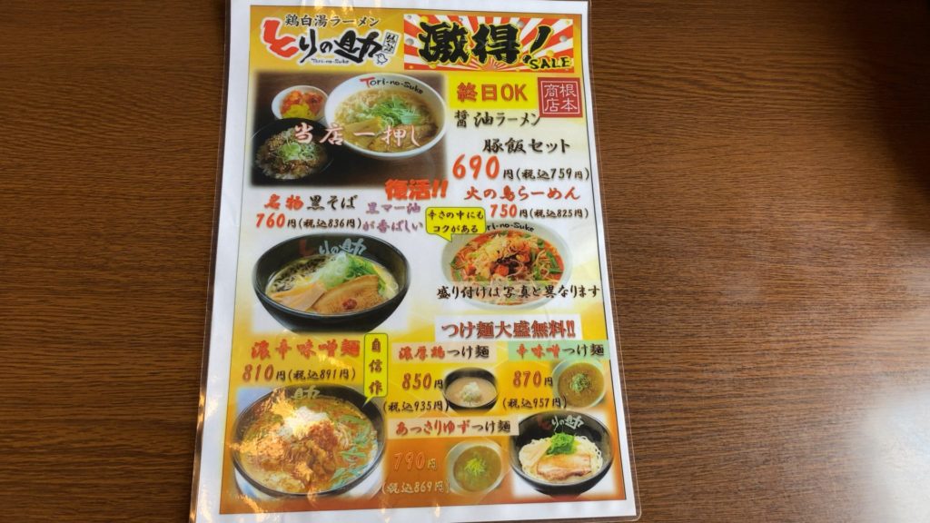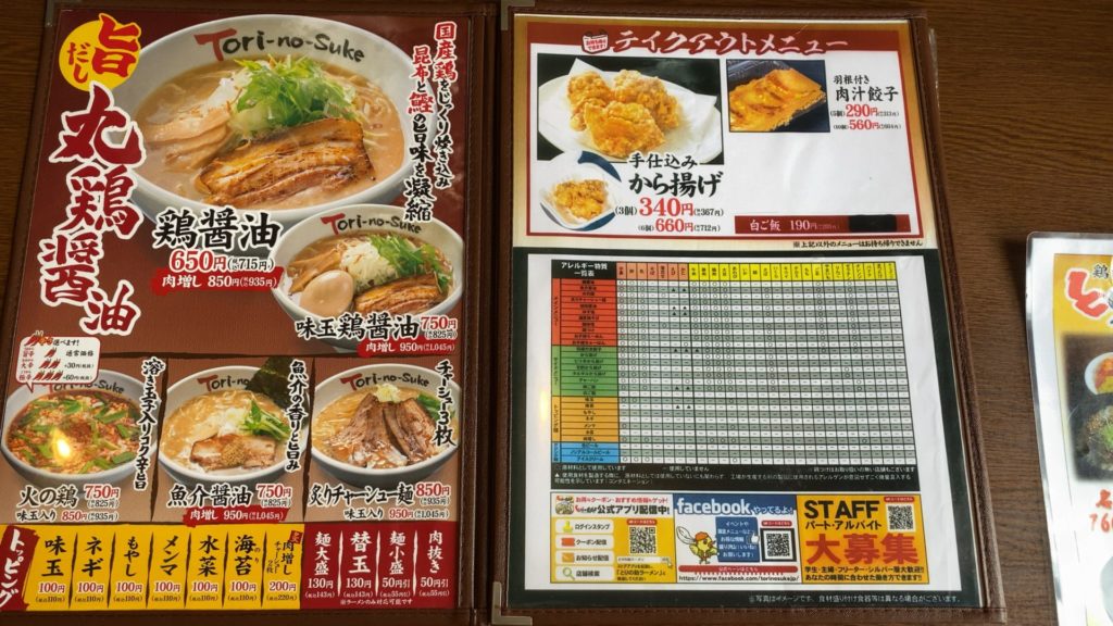 とりの助のメニューが豊富で迷うも、お店一押しの醤油ラーメン&豚飯セットをオーダー!しかしコク辛旨の火の鶏も気になる!