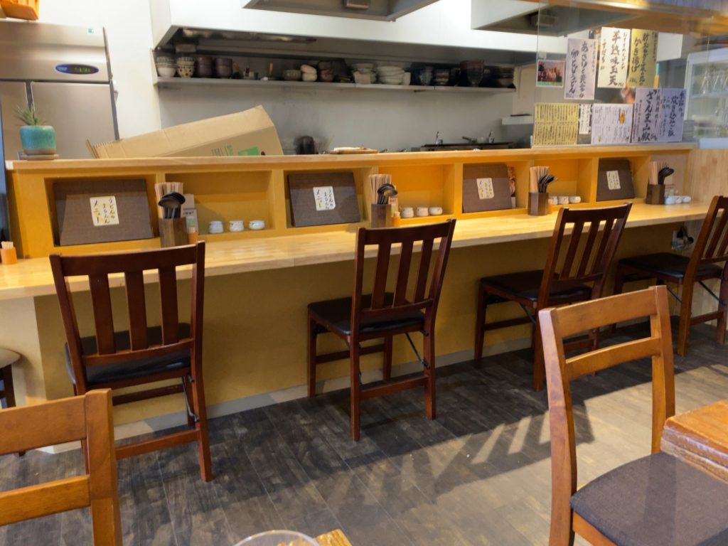 店内を見てみると、座席は、カウンターが7席、2人テーブルが3つ、4人テーブルが1つ配置されています。