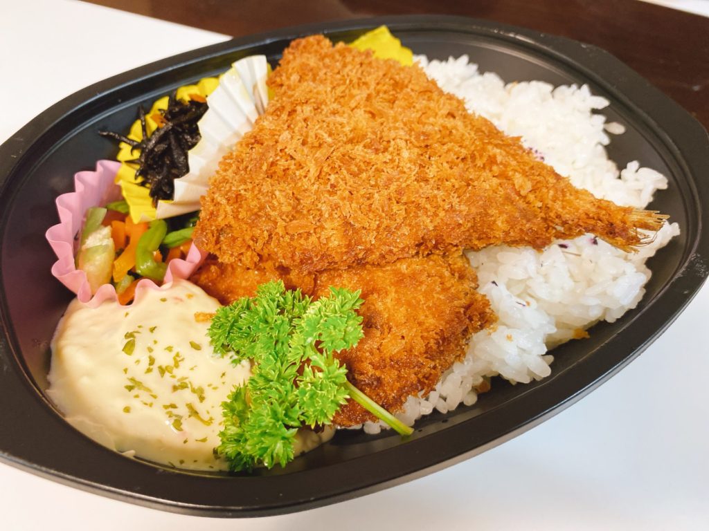この厚い身のアジフライが2枚入っているので、食べ応えもあります。