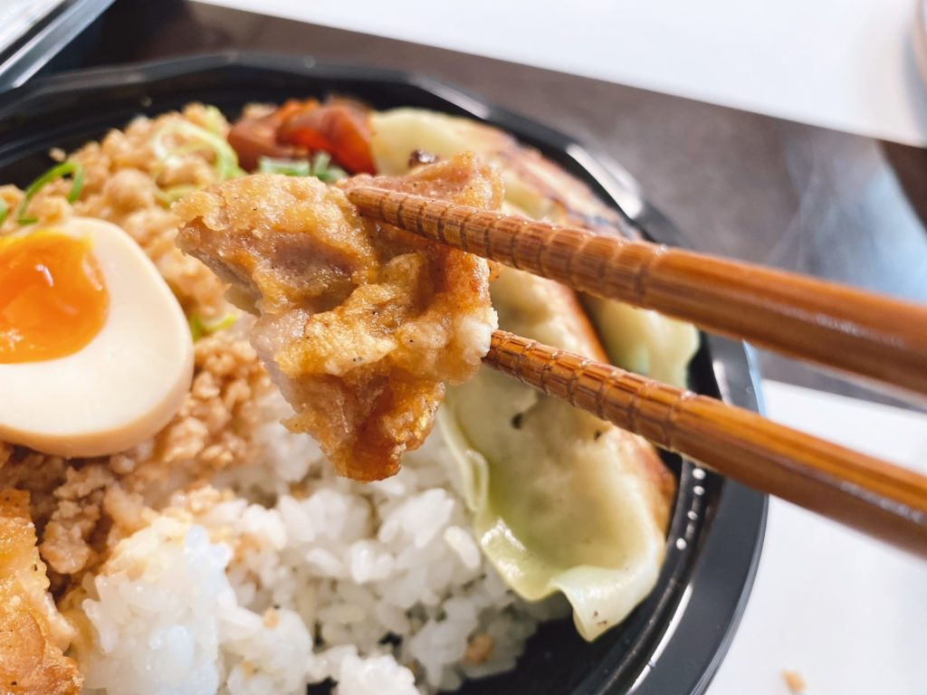 餃子と唐揚げが中心になった弁当と丼ですね。