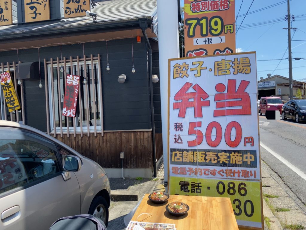 西大寺線 ばり馬が店外で売り出すテイクアウト弁当が税込500円のワンコイン!餃子や唐揚げも入って、これはオトク!