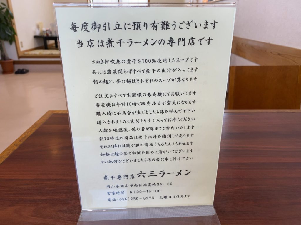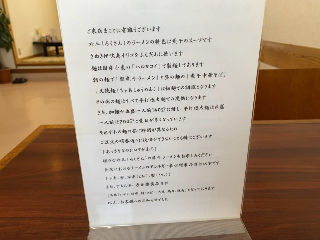朝6時から3時(15時)まで営業しているので六三ラーメンなんでしょうね。