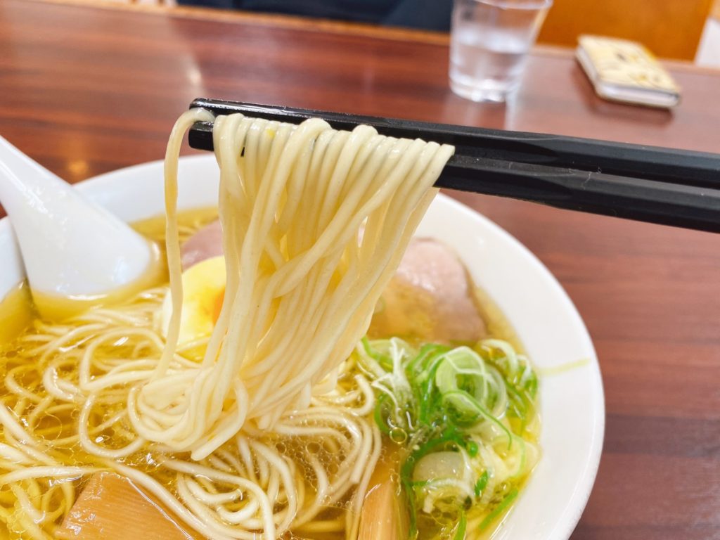 澄んだ煮干しスープに鶏油が黄金に輝く!六三ラーメンは、そのスープとそれに負けない麺が際立って美味しく、毎日でも食べられるラーメン!