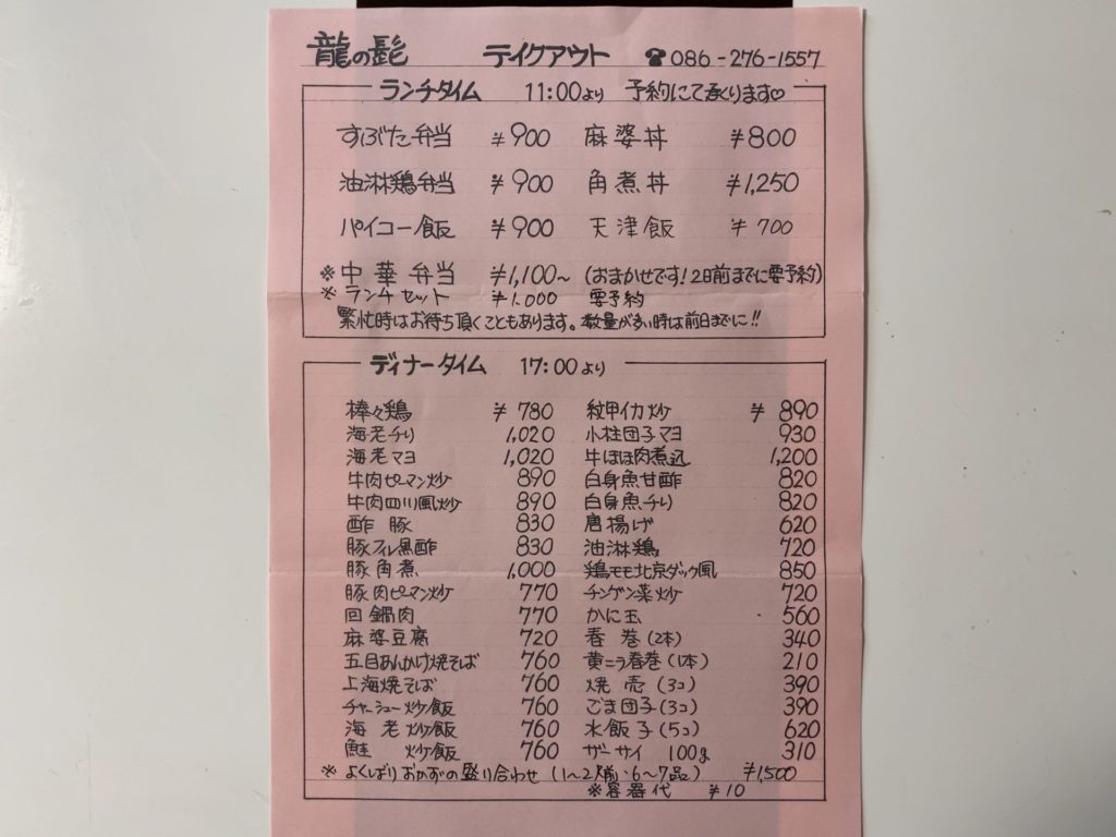それで今回、龍の髭のランチをテイクアウトすることになりました。