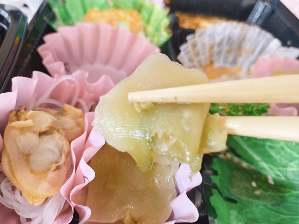 ザーサイやアサリと春雨のサラダ、また揚げ物が2品入っています。