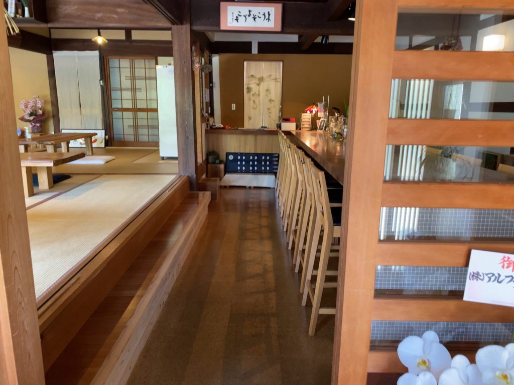 席は、カウンターが11席で、座卓が6つありました。