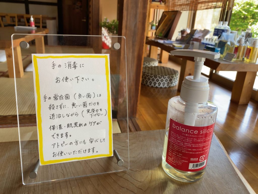 そして、コチラのお店でも扱っておられる、シリカ(ケイ素)の消毒液も置いてあるので安心ですね。