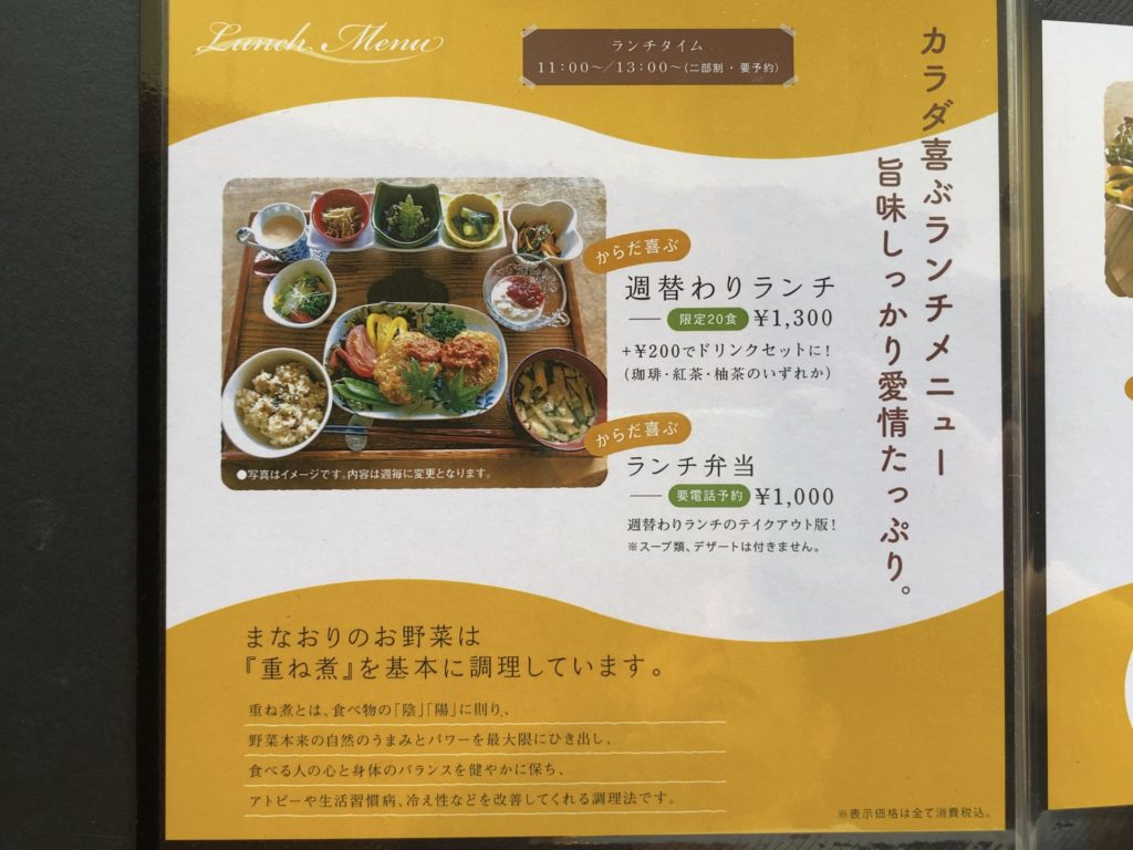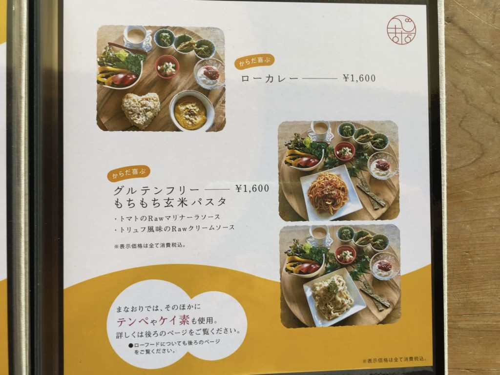 べじかふぇ*まなおりの素敵な店内の雰囲気に心を奪われ、ローフードの体に優しいメニューから、週替わりランチとグルテンフリーのもちもち玄米パスタをオーダー
