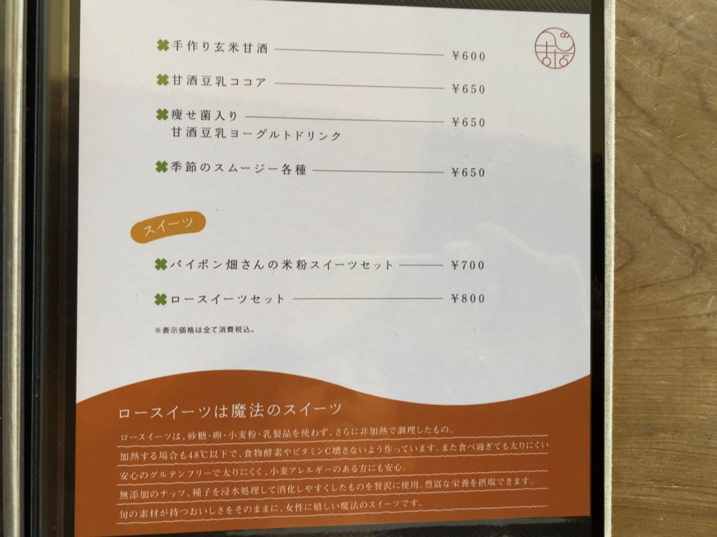 甘酒やココア、ロースイーツなんかもいいですね~。
