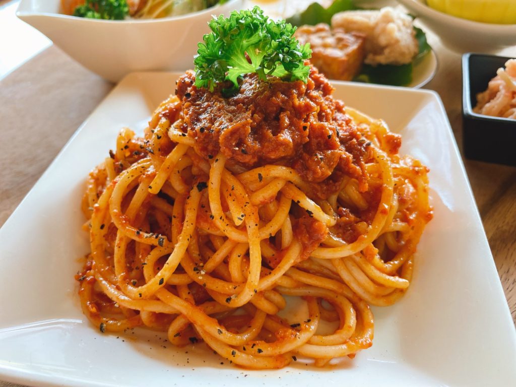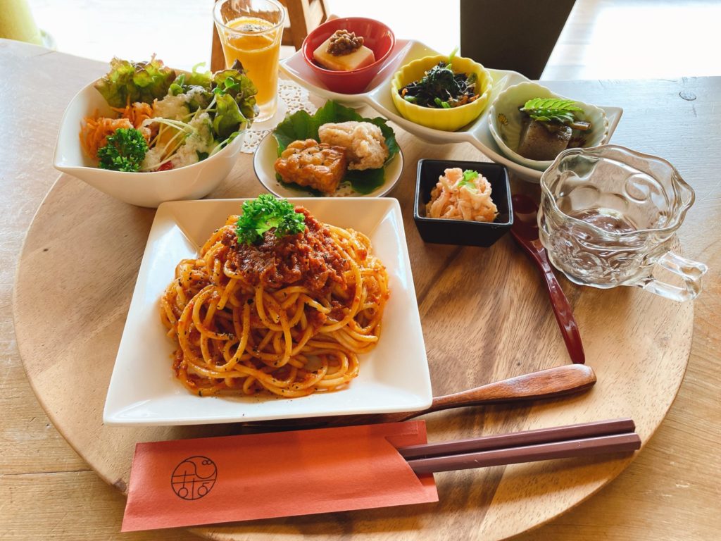 岡山市中区 べじかふぇ*まなおりで、ローフードのランチを堪能!大豆とキャベツのメンチカツも、パスタも美味!