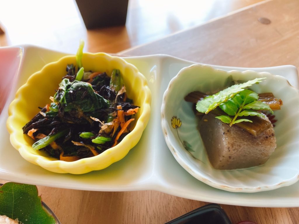 左がほうれん草とひじきのお浸しですが、酢の物仕立てにになっていました。
