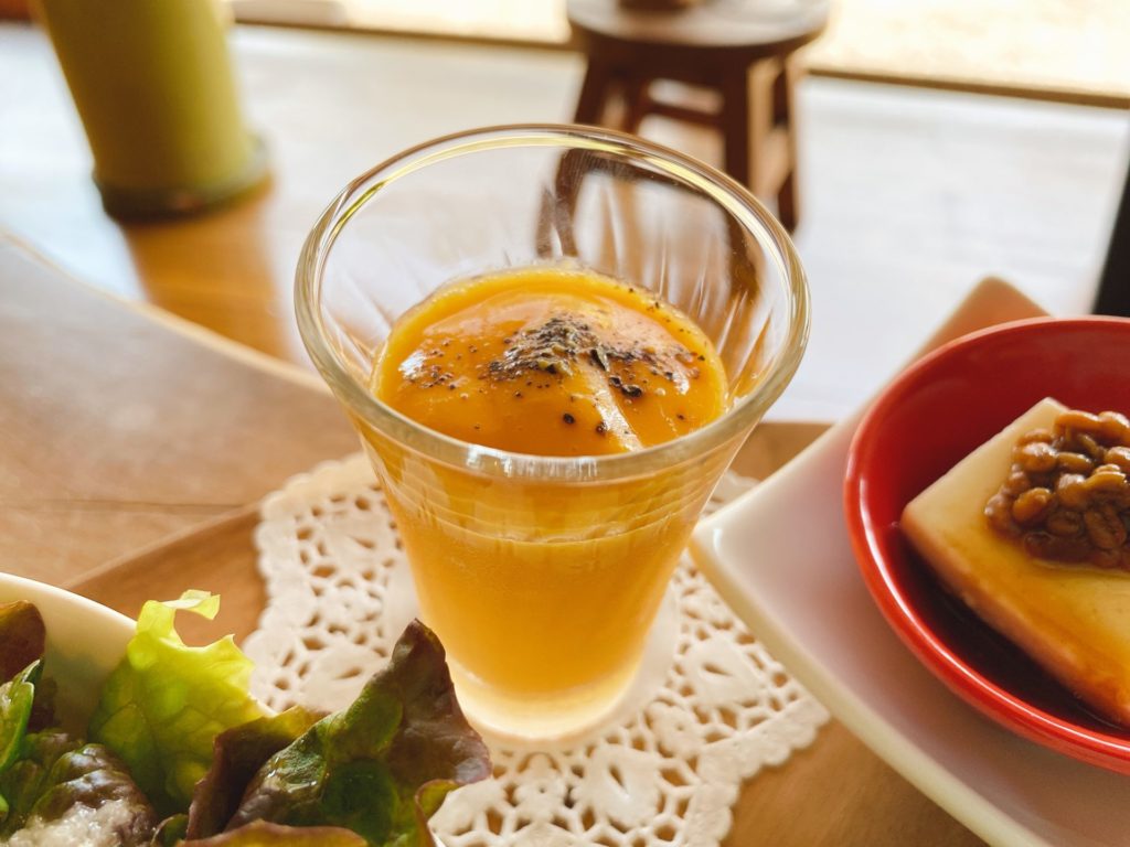 まずは、ニンジンと豆乳のスープだったかな。