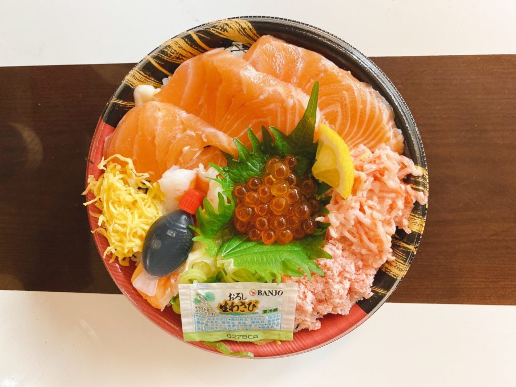 岡山ばら寿司や、色んな巻寿司もあって、きんし巻や、サーモンエビマヨ巻も買おうかと迷いましたが、今日はテイクアウト用の海鮮丼3種類を各1つずつ購入することにしました。