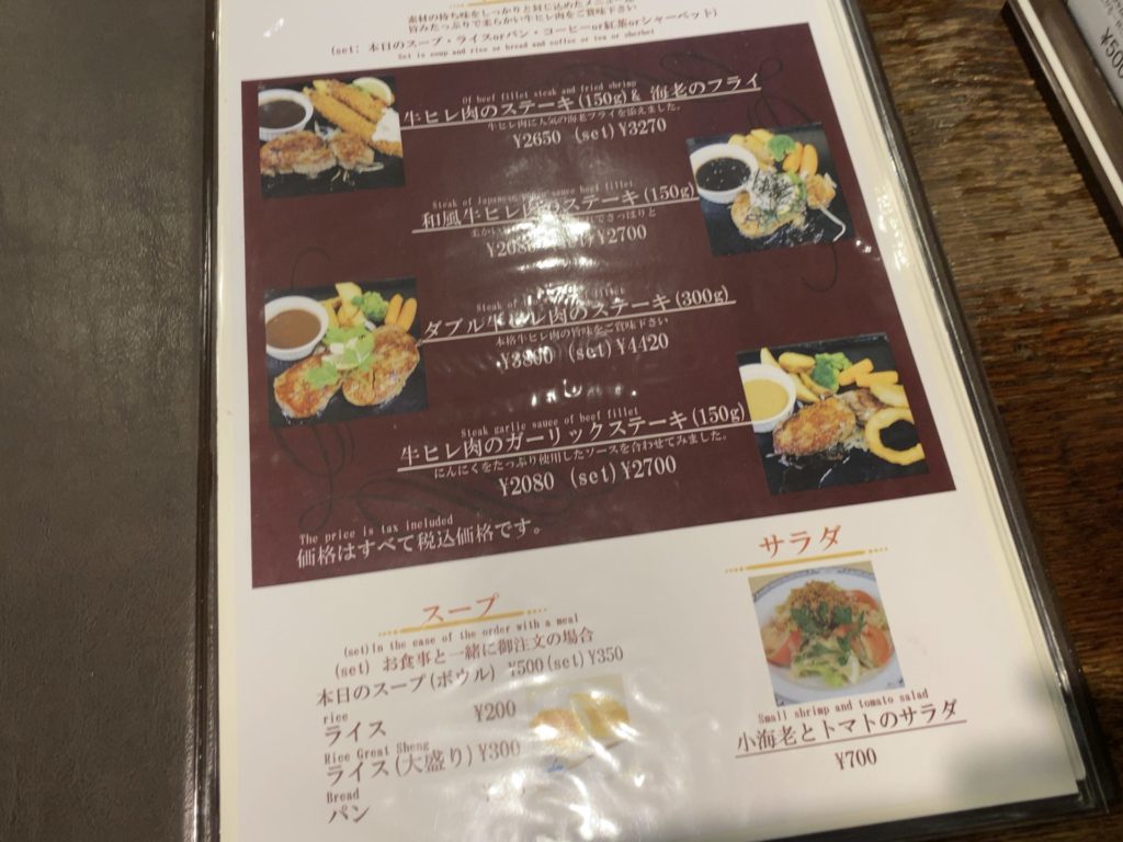 説明がありませんでしたので、週替わりランチのみ尋ねて、ハンバーグとカニクリームコロッケだと分かりました。