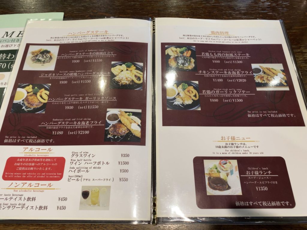 ボンジョルの洋風の店内はとても落ち着く空間で、ランチメニューもハンバーグやフライ等、洋食系の美味しそうなものばかり!