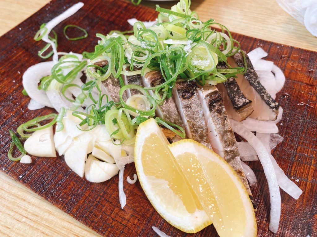 座敷に座ってから15分ほどで、鰆の塩タタキが運ばれてきました。
