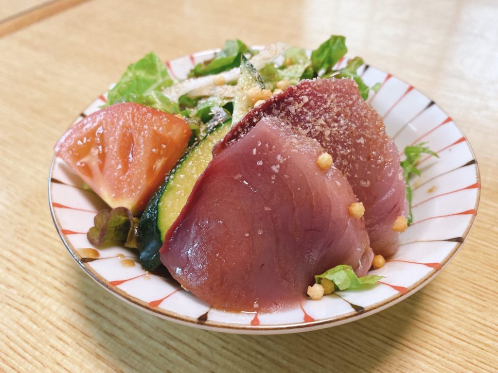 この刺身が何だったのか確認はとれませんでしたが、私的には「ヨコワ」かと。