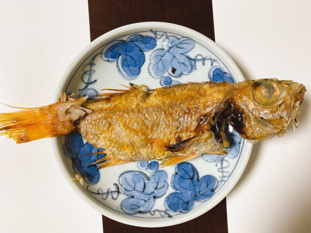 豪華なランチで十分に満足した一日でしたが、帰宅すると、次男がシマアジの刺身と、ノドグロの塩焼きを・・・!