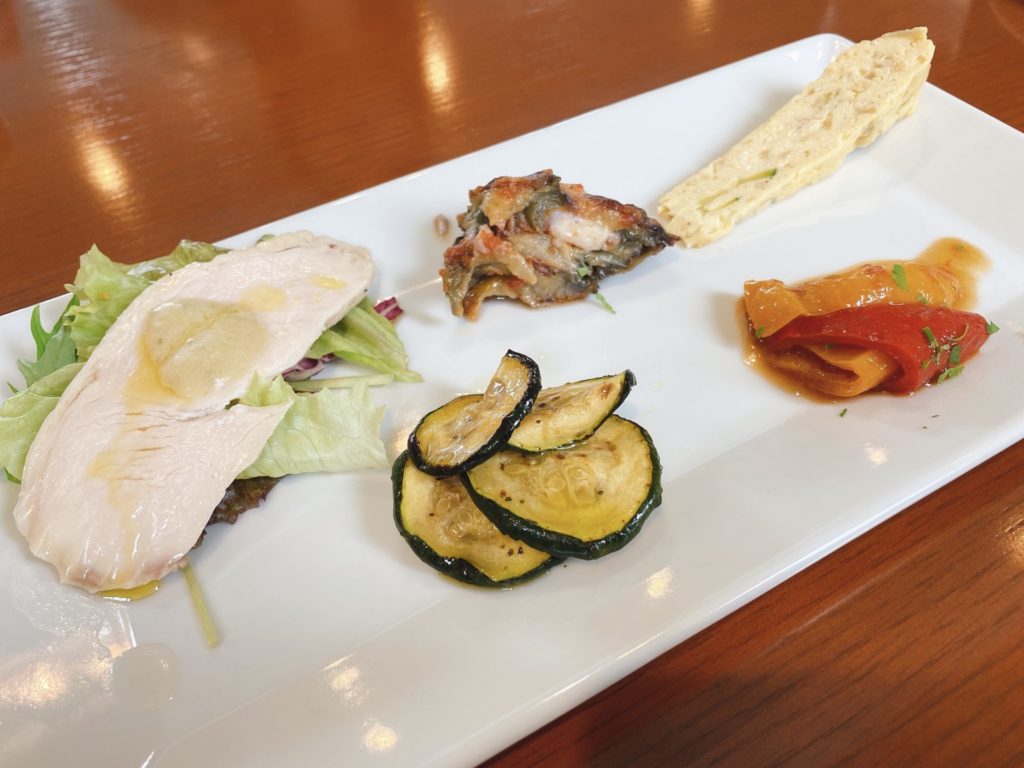 手前のズッキーニが、しっかりニンニクの効いた味付けで美味しかったですね。