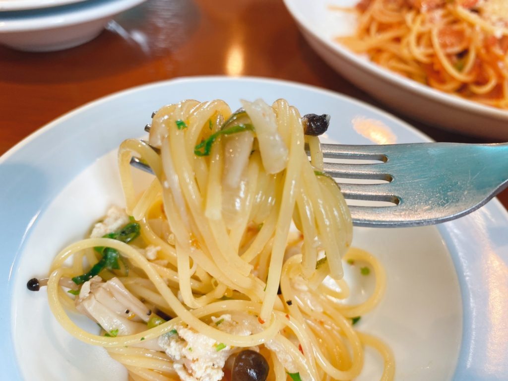 ペペロンチーノ・ナポリタン・クリームソースのパスタは、どれも個性的!パスタの茹で加減もちょうどいい!