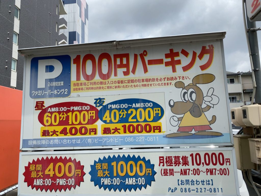 岡山駅から歩いて15分、車で3分くらいの所ですが、駐車場がありませんので車の方は近隣のコインパーキング等に停める必要があります。