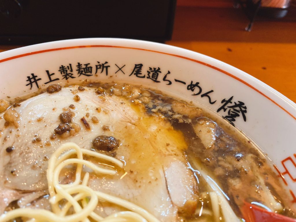 丼に、井上製麺所と尾道らーめん燈の文字が!