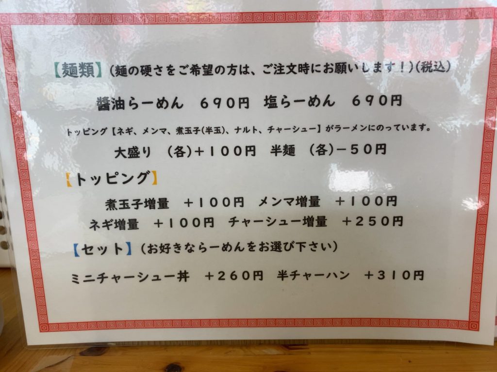 店員さんに、豚骨ラーメンは無いんですか?って尋ねてみると、今は醤油ラーメンと塩ラーメンのみとの事。
