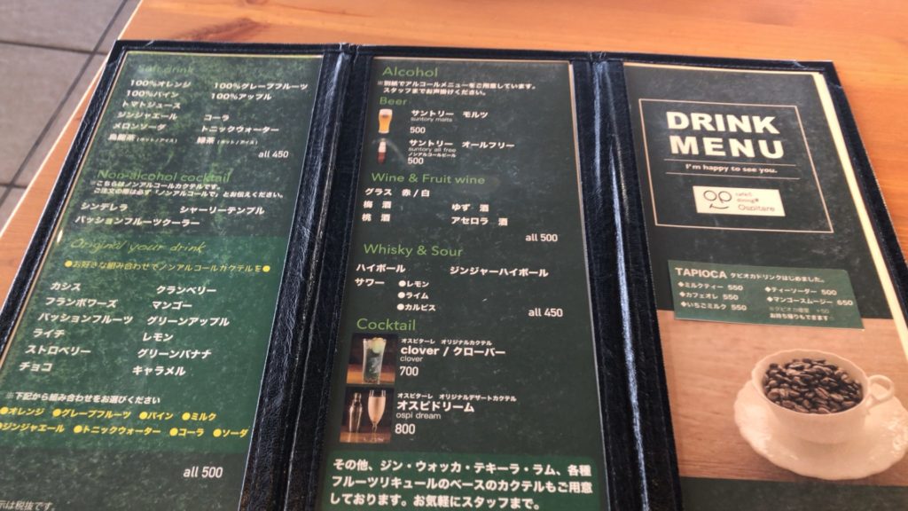 ドリンクメニューも、アルコールを含めて色々あるようなので、夜のメニューでも楽しめそうですね。