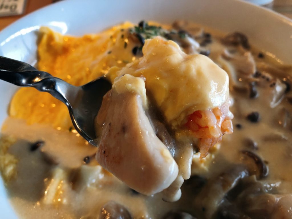 卵のフワトロ感、クリームソース、チキン、きのこ、全てが合ってたと思います。