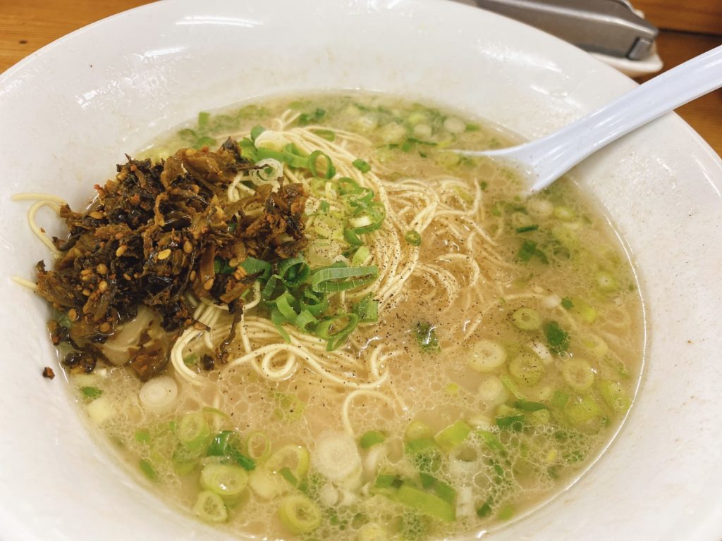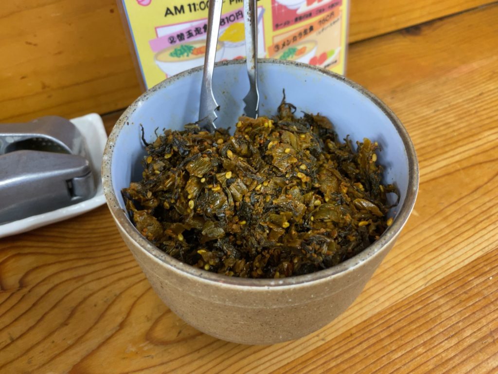 さすがにこれから打ち合わせで、ニンニクはNGなので、辛子高菜で味変をしてみました。