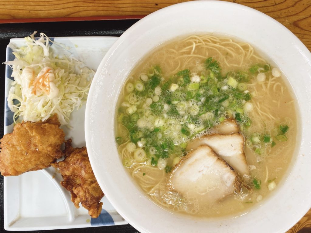 秀やすの長浜ラーメンは税込620円でコスパもいい!迷いなく唐揚げと替玉の付いた「替玉定食」810円をオーダー!