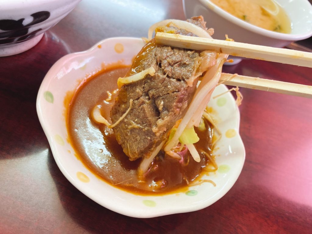 当新田食堂は鉄板焼肉のお店で、ホルモンうどんも激ウマで超オススメ!でも今日のランチは量が多くてうどん無し