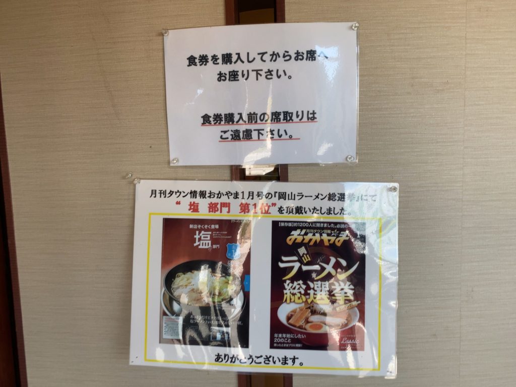 2017年岡山ラーメン総選挙の塩部門で、第一位の実績のある塩ラーメン専門店です。