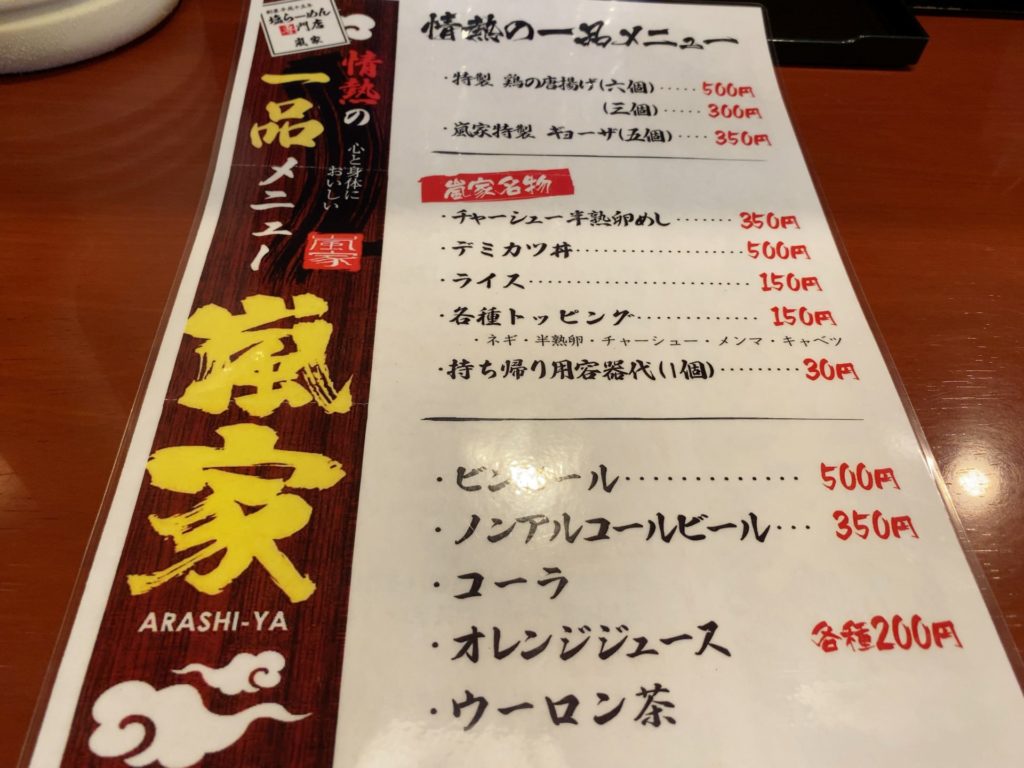 食券を渡して、待つ間に席に備え付けられているメニューも一応チェック。