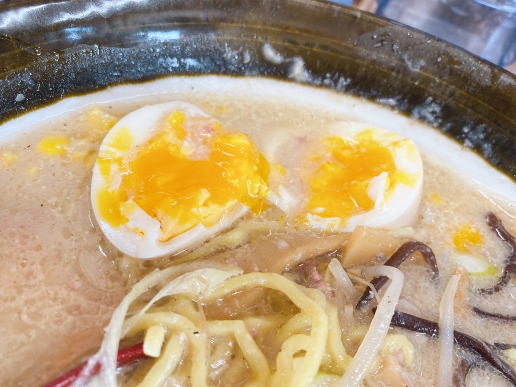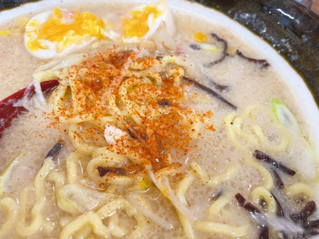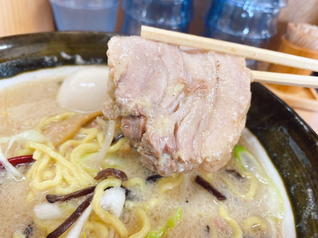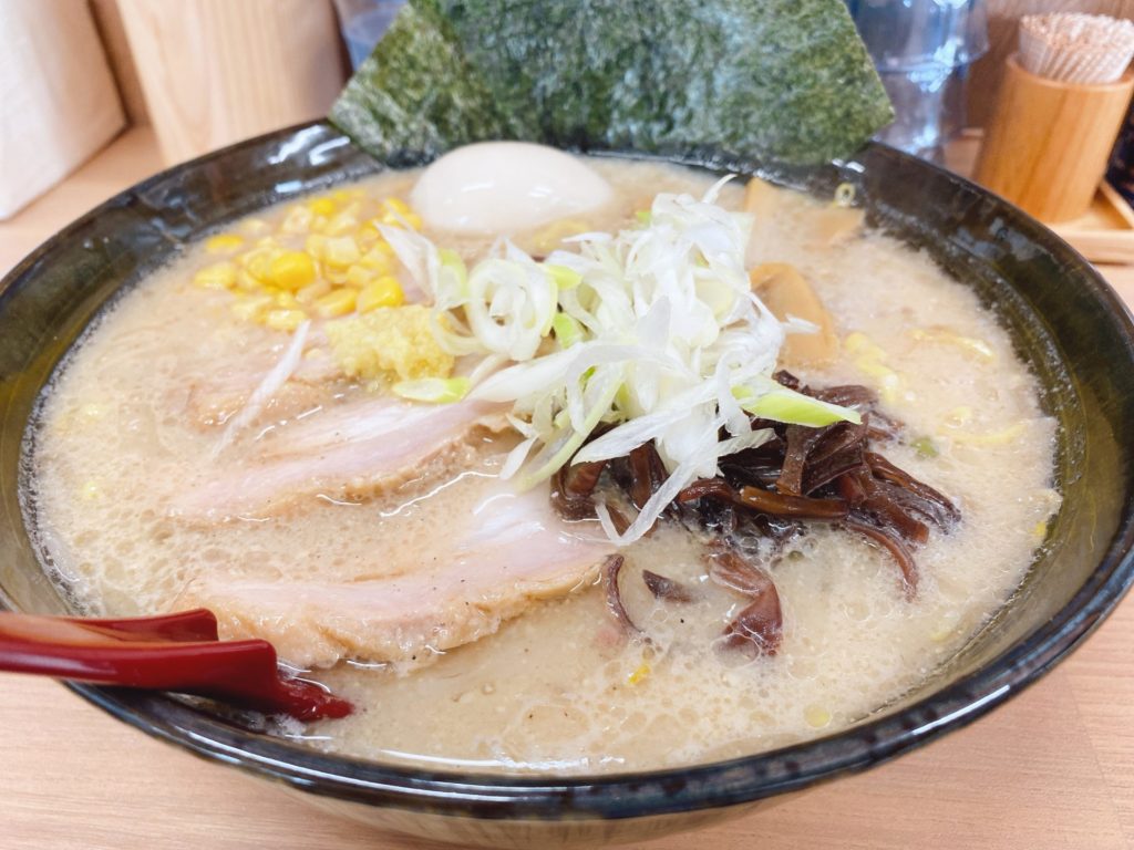 味玉・コーン・のり・メンマ・きくらげ・ねぎが入って、チャーシュー増しとなっています。