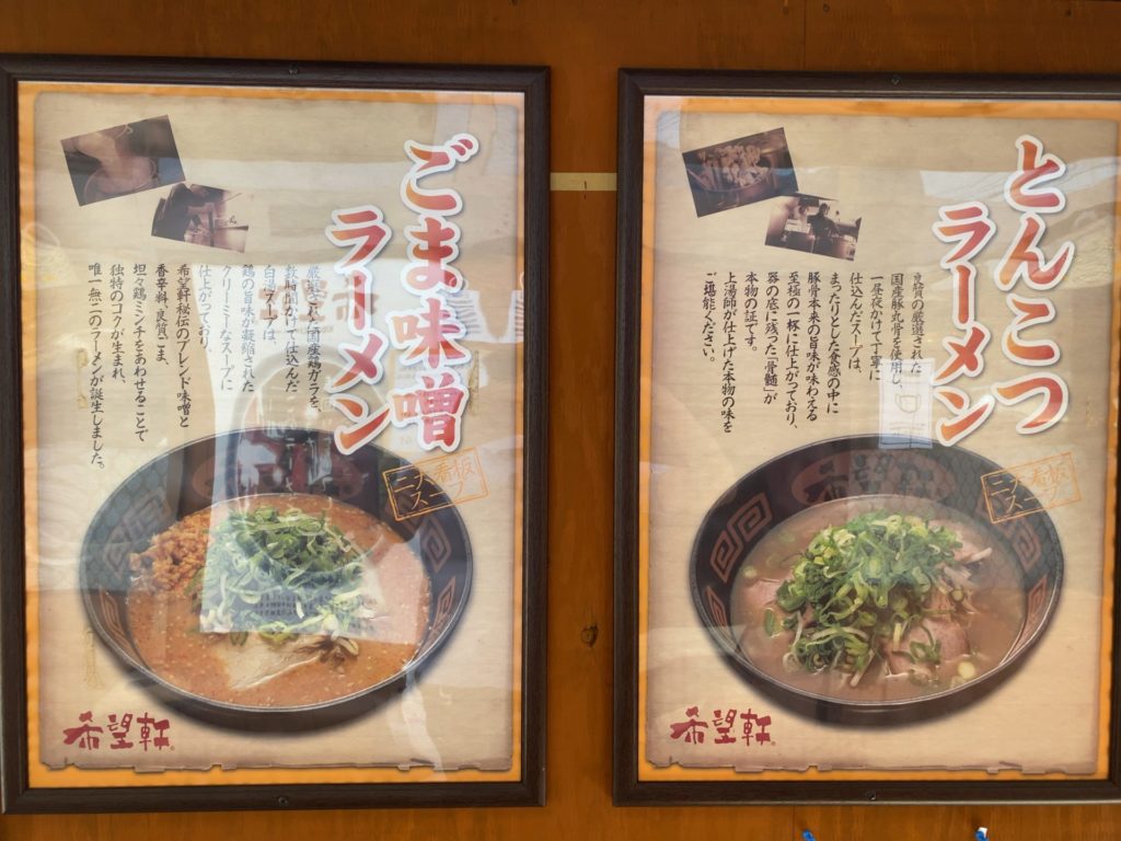 入り口にあった、希望軒の二大看板スープの紹介が食欲をそそります。