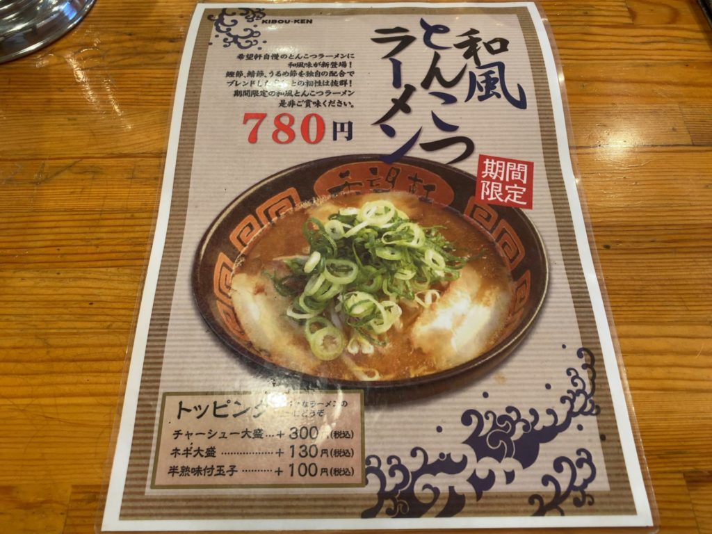 同僚はよく来るらしく、いつもこの和風とんこつラーメンを食べているということで、迷うことなくコレに決定。