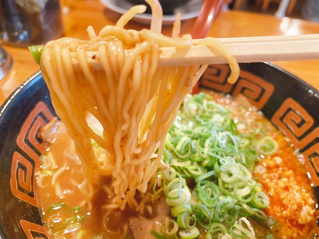 胡麻と味噌の風味とコク、そして辛味が去る頃に、そーっと鶏ガラの白湯スープがまろっと現れます。