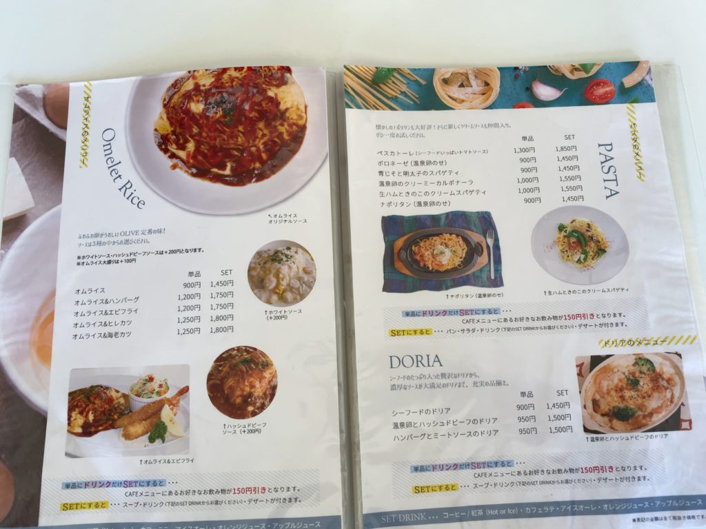 私は他のメニューを見る前に、とりあえずよくばりOLIVEセットにしようかなと。