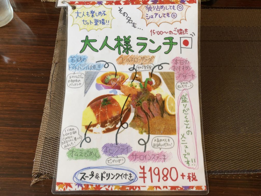 色々メニューがありますが、11時から15時のランチメニューはコチラですね。