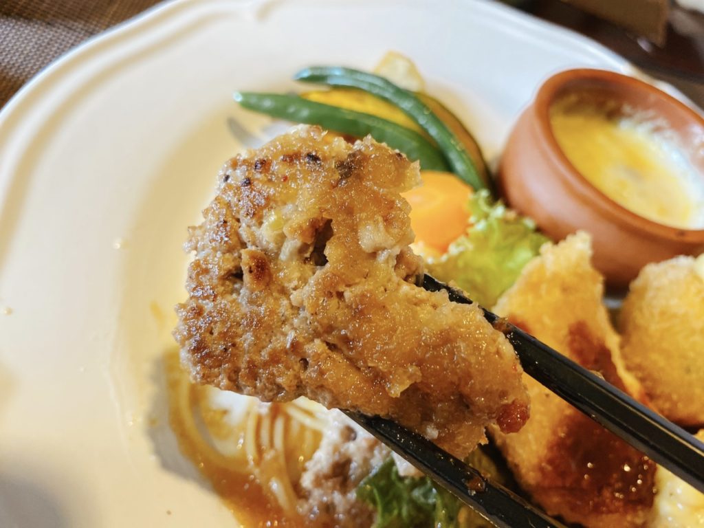 ハンバーグが半分隠れちゃってるので、量が少なめに見えますが、結構ボリュームあります。