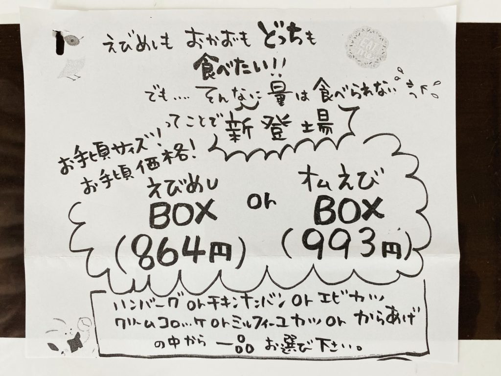 ナポリタン、ドリア、カレーライス、ハヤシライス、ハンバーグにえびめし、オムえびめしなんていうメニューもあり、美味しそうな洋食系がズラリと並んでいます。