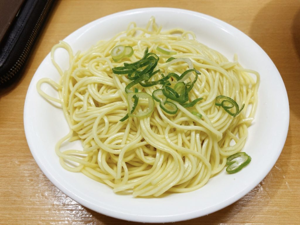 美味しく頂き満腹ながらも、サービスの替玉(細麺)も食べておきたい!