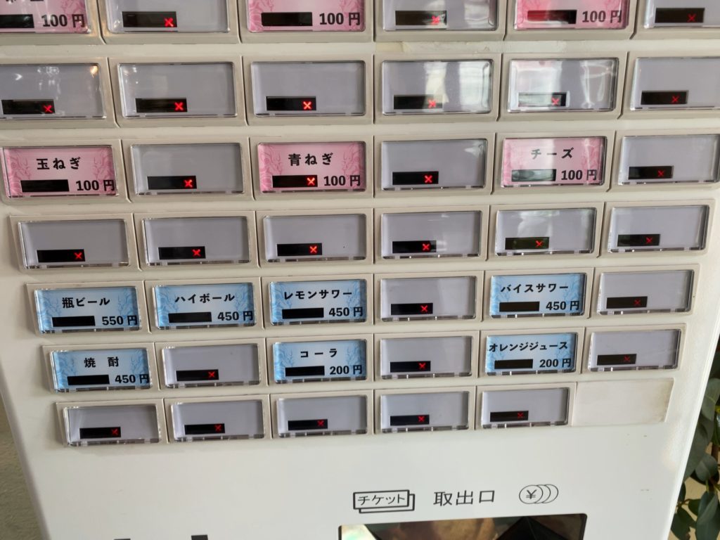 トッピングや飲み物も、券売機の下の方にあります。