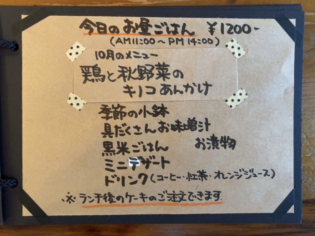 ランチメニュー「今日のお昼ごはん」は、月替わりの1種類かな。