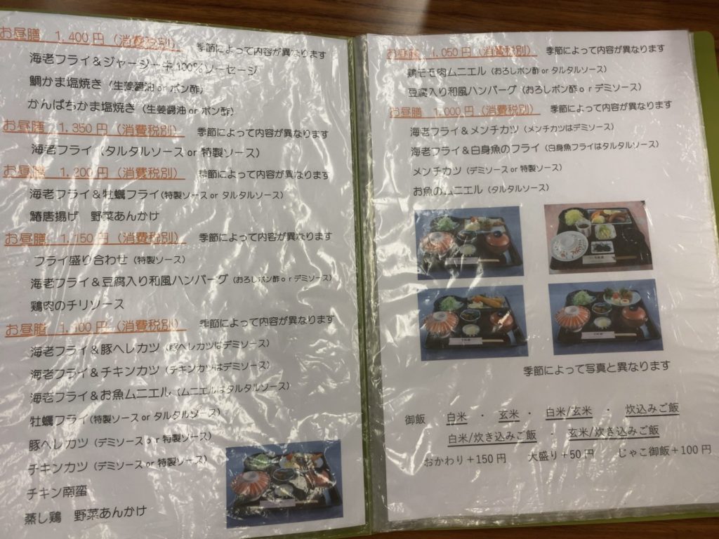 かんぱちかま塩焼きのお昼御膳に目が行きましたが、季節限定の海老フライ&牡蠣フライの強烈なお誘いを受け、タルタルソースでオーダー!