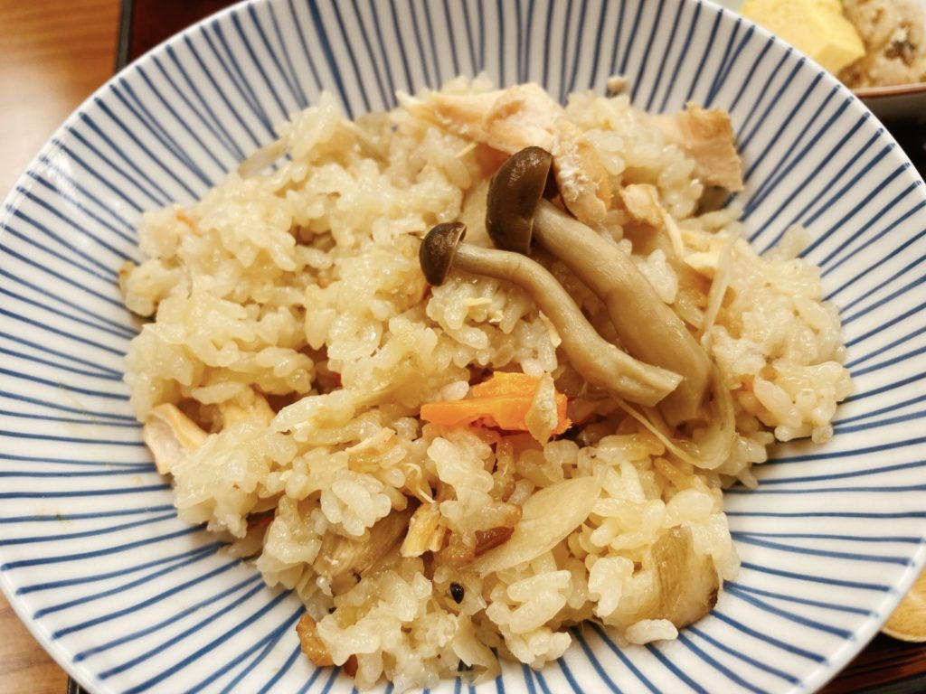 炊き込みご飯も、キノコ類や鮭が入っていて、絶対に美味しいと確信を持てる感じ。