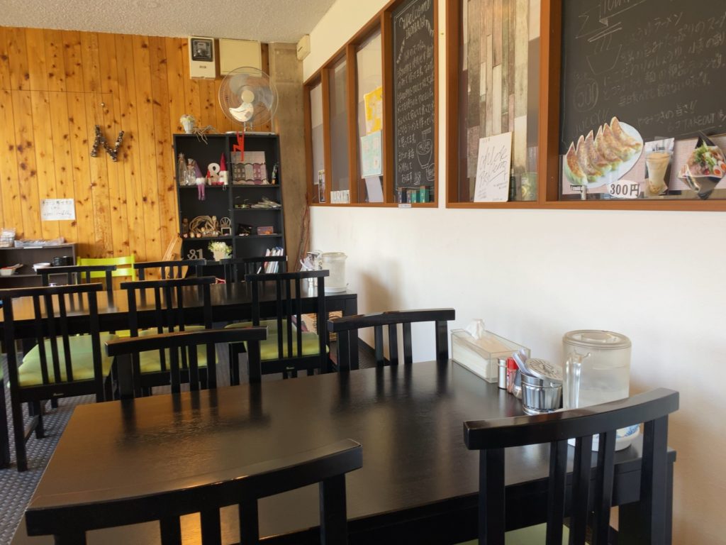座席は、4人用テーブルが2つと6人用テーブルが1つ。