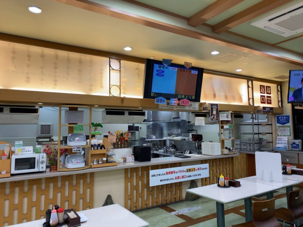 食券機の所に案内してあるんですが、つい食券を厨房カウンターへ持って行く、「SAのフードコートあるある」光景も結構ありました。