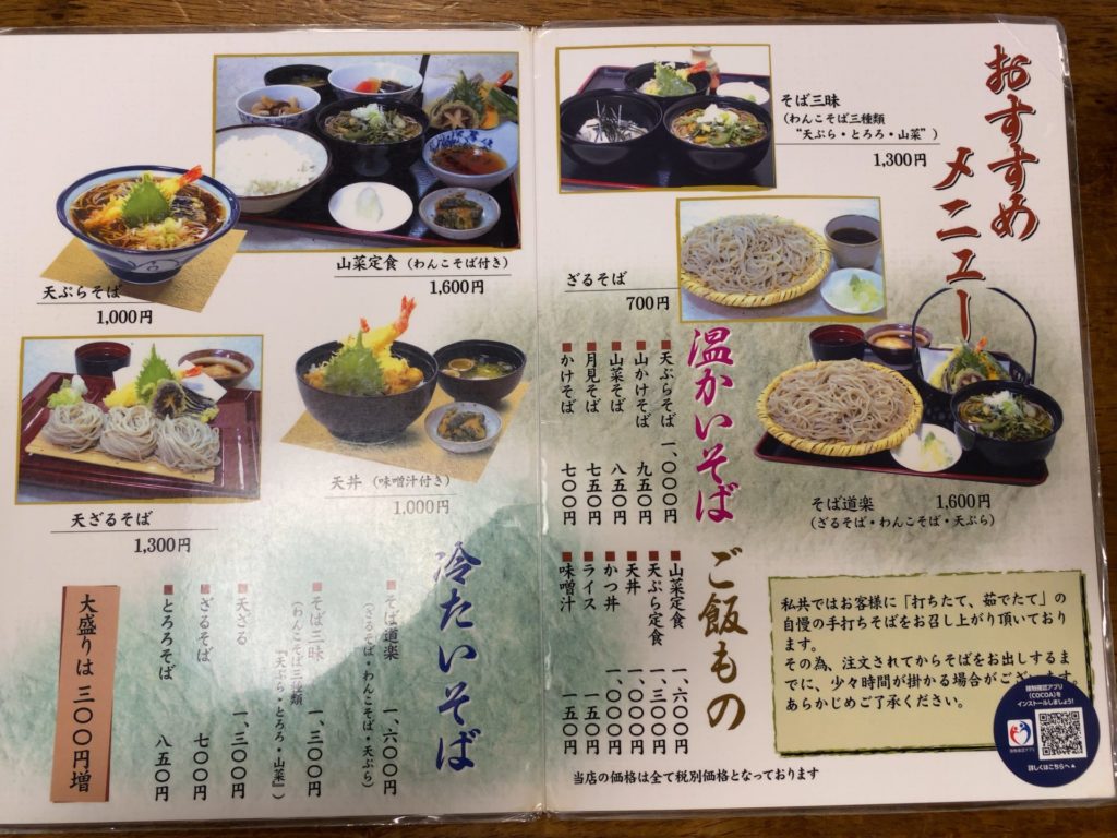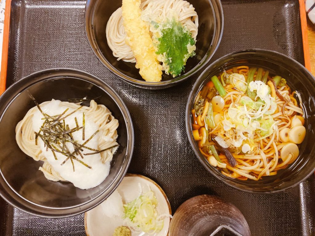 天ぷらそば、とろろそば、山菜そばの3種類が食べられるっていう、ちょっと嬉しいメニュー。